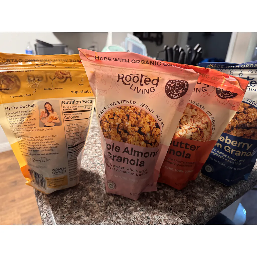 We make granola that’s good for you and the planet. It’s plant-based, made with real ingredients you can pronounce, and comes in packaging that’s fully compostable—no plastic, no greenwashing.